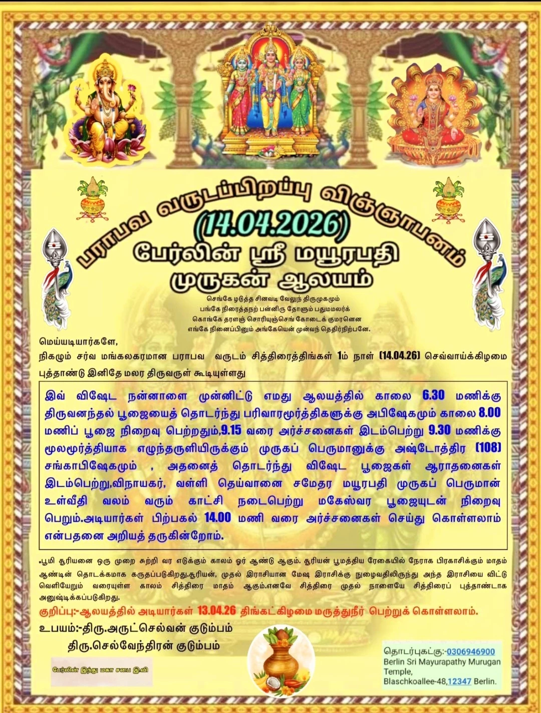 Venue: Arulmiku Srimayoorapathy Murugan Temple- Berlin