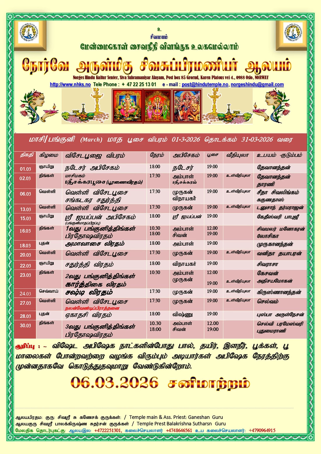 Venue: Norway Arulmigu Sivasubramaniyar Temple
